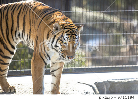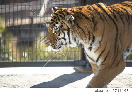 動物園の風景 歩き回るアムールトラ 北海道旭川市