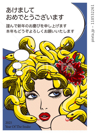 2025年賀状テンプレート「POPアート風デザイン」あけおめ 添え書き付パターン