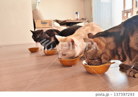 飼い猫の食事風景