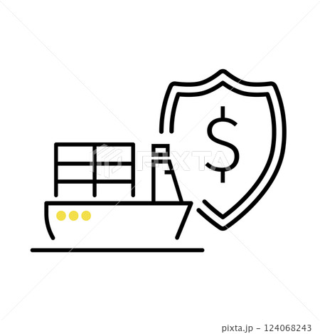 ドル記号の盾と貿易船、高い関税のイメージアイコン、ベクター素材