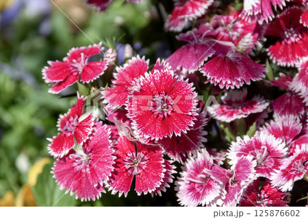 三鷹中原に咲く赤いナデシコ(ダイアンサス)の花