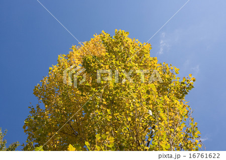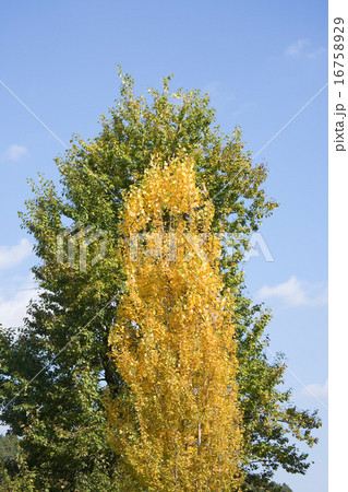 黄色い葉のポプラと青空