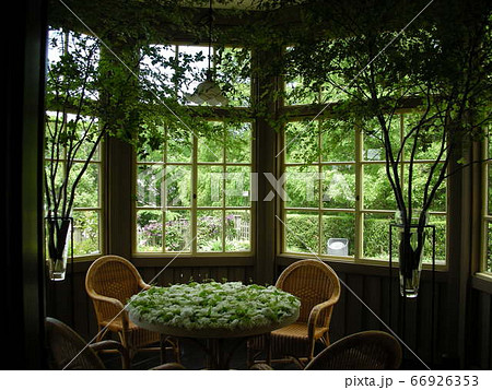 横浜 外交官の家のサンルーム 新緑背景