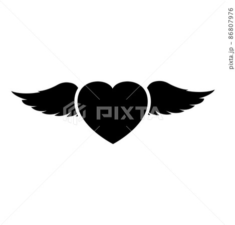 Black hearts with wings silhouettes. Heart icon collection, isolated flying valentines day decorations. Flat love romantic vector symbols