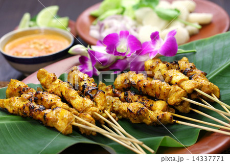 美味しそうなタイ料理のガイサテ(焼き鳥)