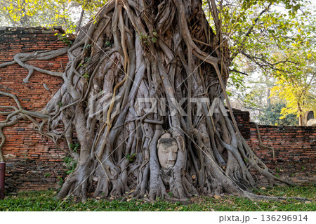 タイ アユタヤ ワット・マハタート 木の根に包まれた仏頭