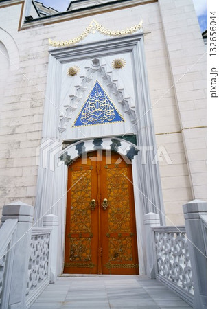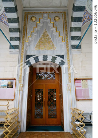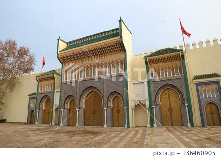 モロッコのフェズ王宮の門にあるアラベスク模様のタイル装飾