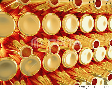 Storage of many empty golden bottles for wine or brandy