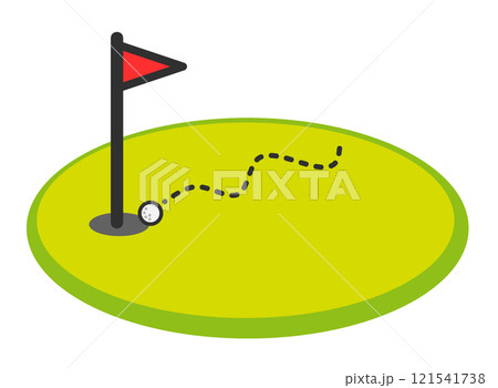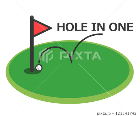 趣味でするゴルフで奇跡的にホールインワンするイスショットのイラスト