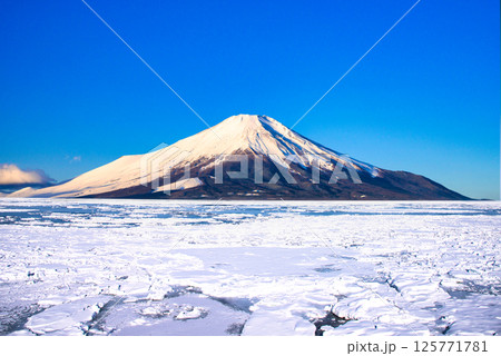 富士山とオホーツク海の流氷合成