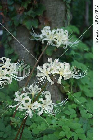 シロバナマンジュシャゲの白い花が咲いています。学名はLycoris albiflora。白い彼岸花