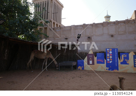 アルファヒディ地区のアラブの伝統的な建物とラクダ