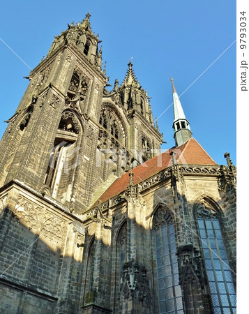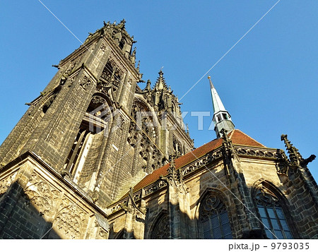 旧市街の町並みから見た大聖堂の尖塔(ドイツ・マイセン)