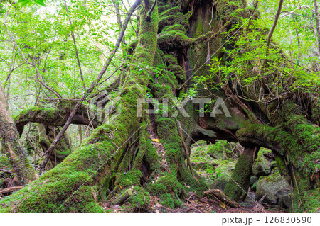 屋久島白谷雲水峡 木漏れ日と神が宿る森(春