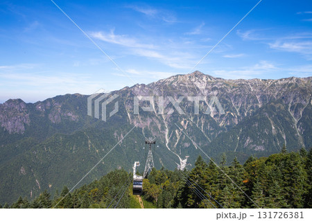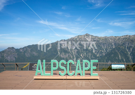 秋の観光名所立山黒部アルペンルートの黒部平の展望台で風景を撮影する観光客の姿と山の風景