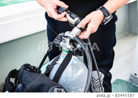 スクーバダイビング ダイビング船上でのレギュレーターのセッティング