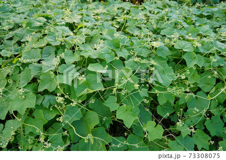 日本の侵略的外来種アレチウリ恐竜のような新芽
