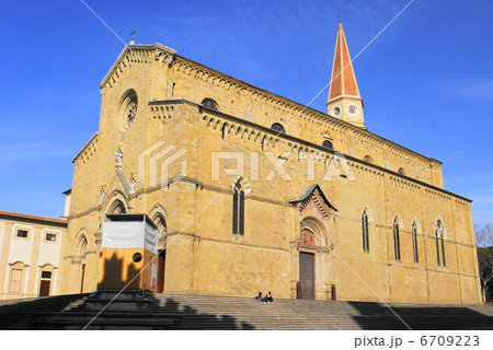 イタリア アレッツォのグランデ広場とサンタ・マリア・デッラ・ピエーヴェ教会