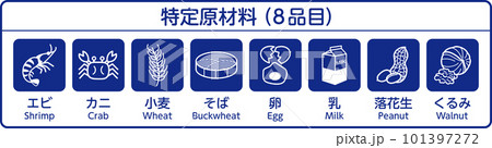 食物アレルギー 特定原材料8品目 アイコン カラー