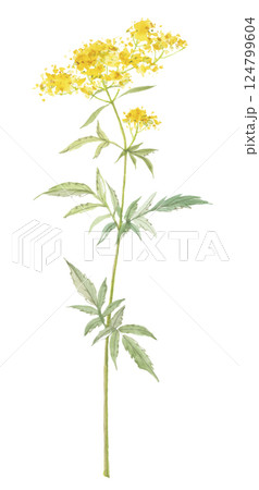 水彩で描いた女郎花 オミナエシ 花と根 敗醤根 ハイショウコン