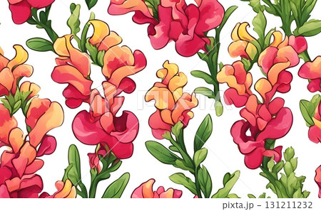 An illustration of vibrant snapdragon flowers in a pattern. This beautiful background is perfect for creative, decorative, or floral-themed designs. AI Generated