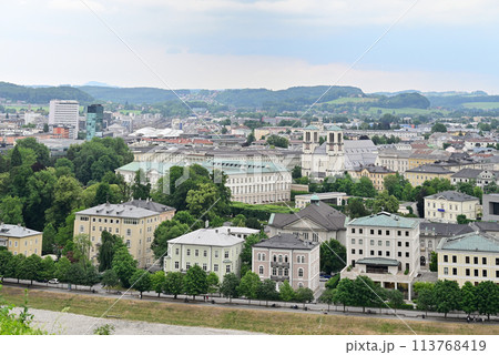 メンヒスベルクの展望台からザルツブルク新市街のミラベル宮殿と聖アンドレ教会