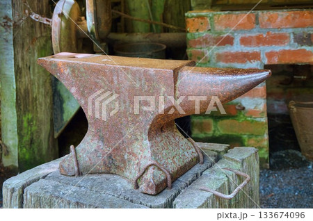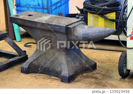 鍛冶屋などの工場で金属を叩いて成形する際に使う平らな鉄製の台… 『金床・アンビル』
