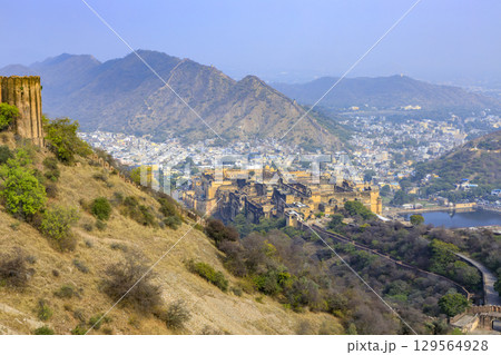 ジャイガル城から望むアンベール城とマオサ湖と町並み