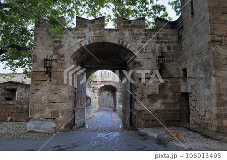 ギリシャ・ロドス島のアンボワーズ門・石橋・砲弾