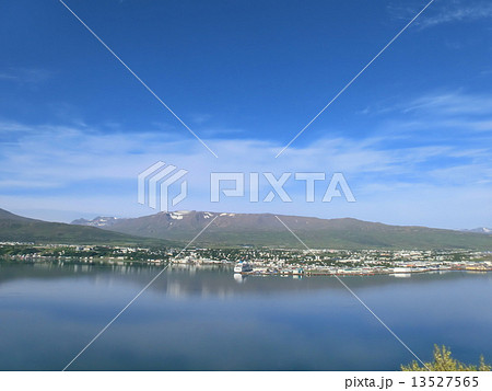 Iceland Akureyri Idyllic landscape. fjord Snow mountain Sulur