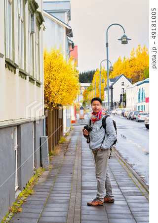 A man traveler sight seeing downtown Akureyri