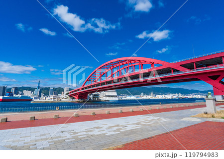 神戸市 ポートアイランドに架かる夏の神戸大橋