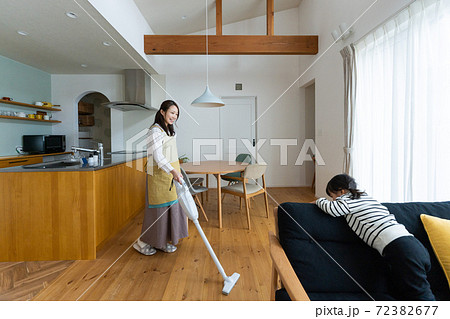 掃除をするママと子ども
