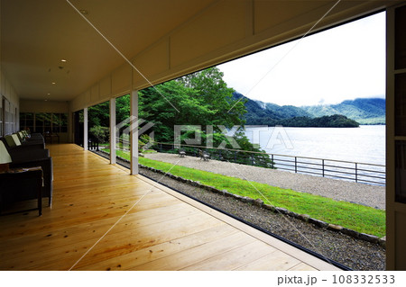 夏の奥日光 雨上がりの中禅寺湖畔に建つ英国大使館別荘内から外の眺め