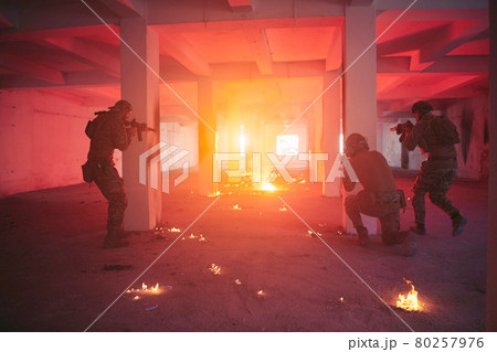 military troops in action urban environment