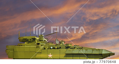 Air defense radars of military mobile anti aircraft systems, modern army industry on the background of the sunset orange sky, Russia