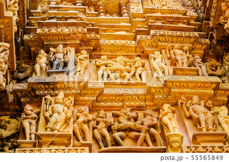 インドのカジュラーホー 世界遺産のカジュラーホー寺院 美しい彫刻