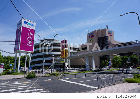 浜松市にある駐車場から見た青空に映える市野イオンの風景(静岡県)