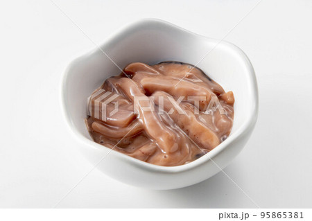 イカの塩辛 茶碗 米 和食 珍味 白背景