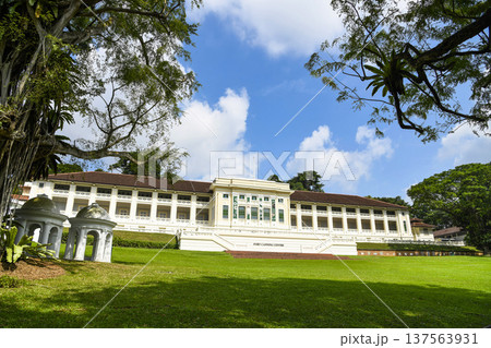 Building view of the Fort Canning Arts Centre atop the hill at Fort Canning Park, Singapore, originally constructed as British army barracks in 1926.
