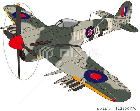 第二次世界大戦前後に活躍した大英帝国の単座プロペラ戦闘機6種類vectorイラストセット。