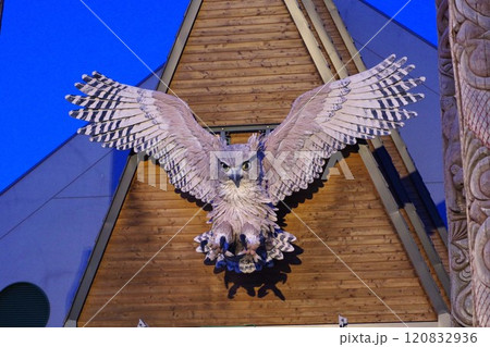 阿寒湖アイヌシアター「イコロ」入口のフクロウ像