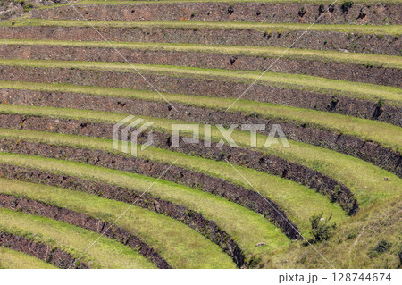 Ancient stone wall at the Inca fortress of Ollantaytambo, Peru