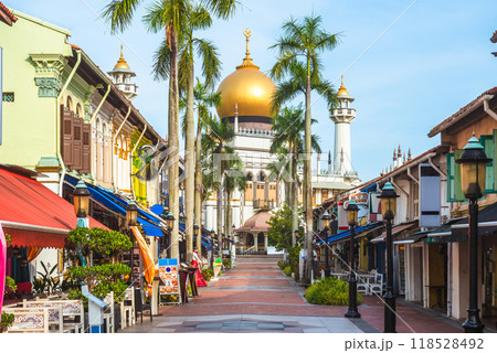 street view of Arab Street with Masjid Sultan located in the Kampong Glam neighborhood, Singapore