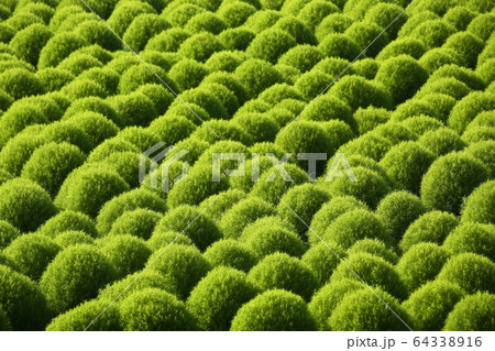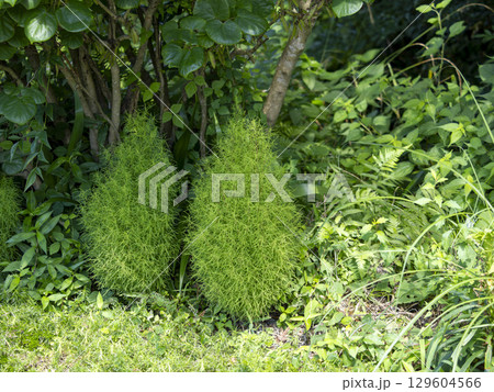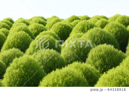 公園のコキアが緑色に茂っています。 学名はBassia scopariaです。