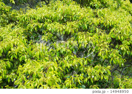 自然 植物 スダジイ、花と若葉が木を覆い尽くすようになると全体が薄黄色になります