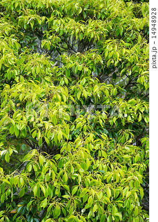 自然 植物 スダジイ、たくさん花をつけると木全体が薄黄緑色になります