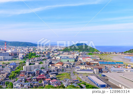 イタンキ浜とイタンキの丘周辺の家並【北海道室蘭市】