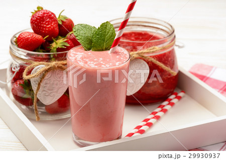 Healthy tasty milk cocktail with strawberries