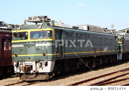 金沢総合車両所松任本所に置かれるEF81トワイライト塗装機